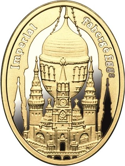 Queen Elizabeth II's effigy with the "Spring Flowers Egg" (1899-1903), containing a miniature anemone bouquet and basket.
