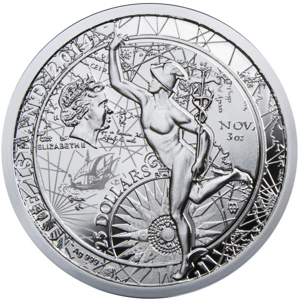 Queen Elizabeth II’s effigy with Mercury, god of commerce and travel.