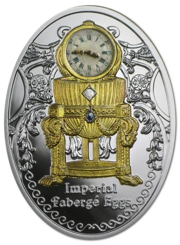 The 1887 Third Imperial Egg by Fabergé features a gilded case with fine details and a watch by Vacheron Constantin that emerges from the top.