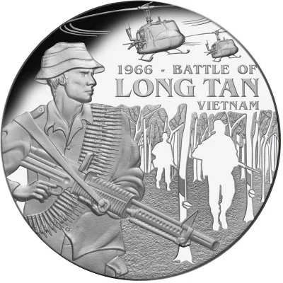 An armed soldier in a forest, with other armed silhouettes and two helicopters overhead.