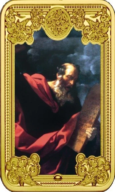 Moses holding the Ten Commandments.