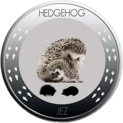 Inner circle: A colored hedgehog and cub with two silhouettes below.