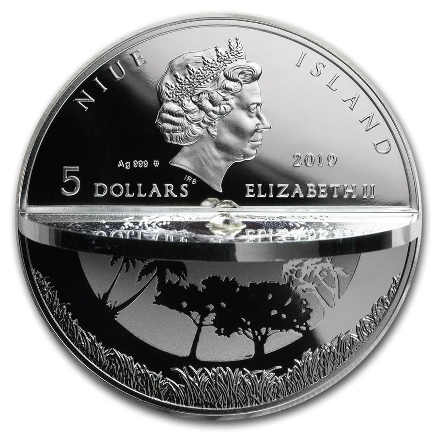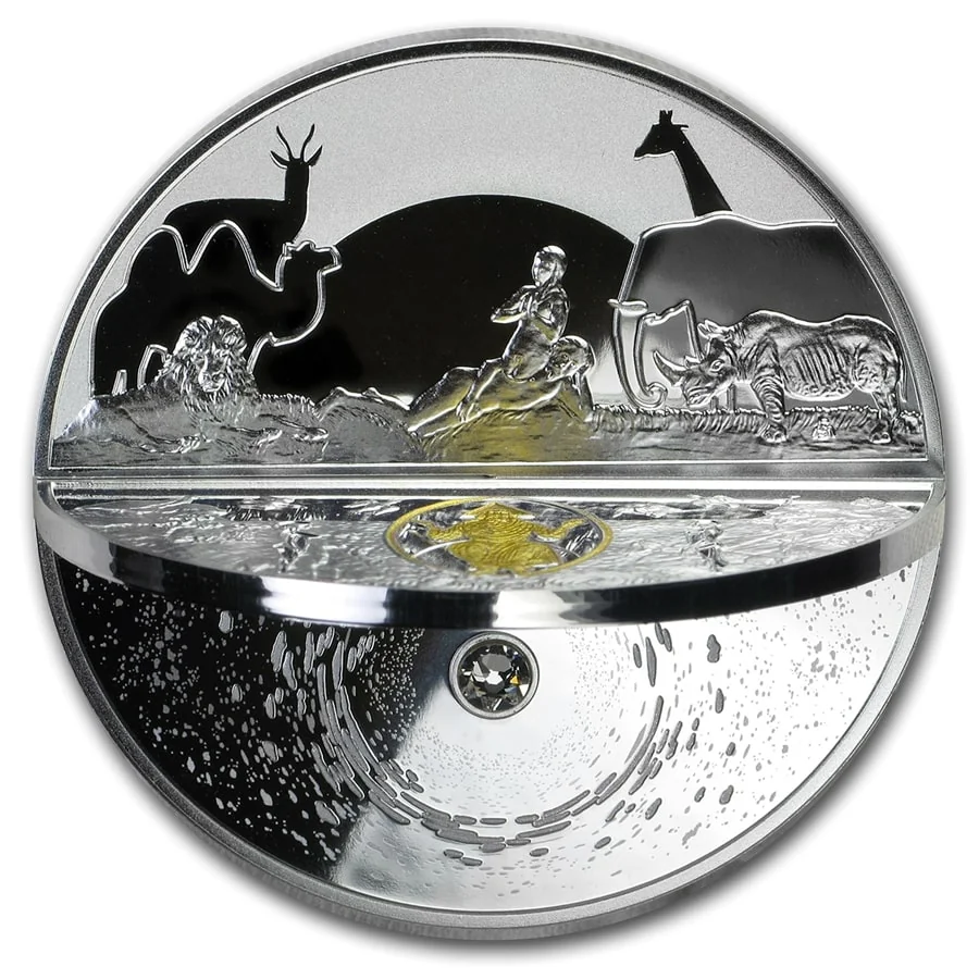 A stunning eight-faced 3D coin adorned with Swarovski crystals.