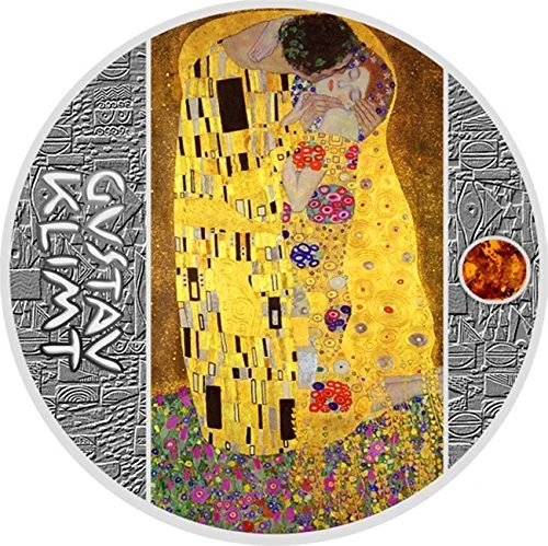 Gustav Klimt's *The Kiss*, with its amber insert on the coin's right side.