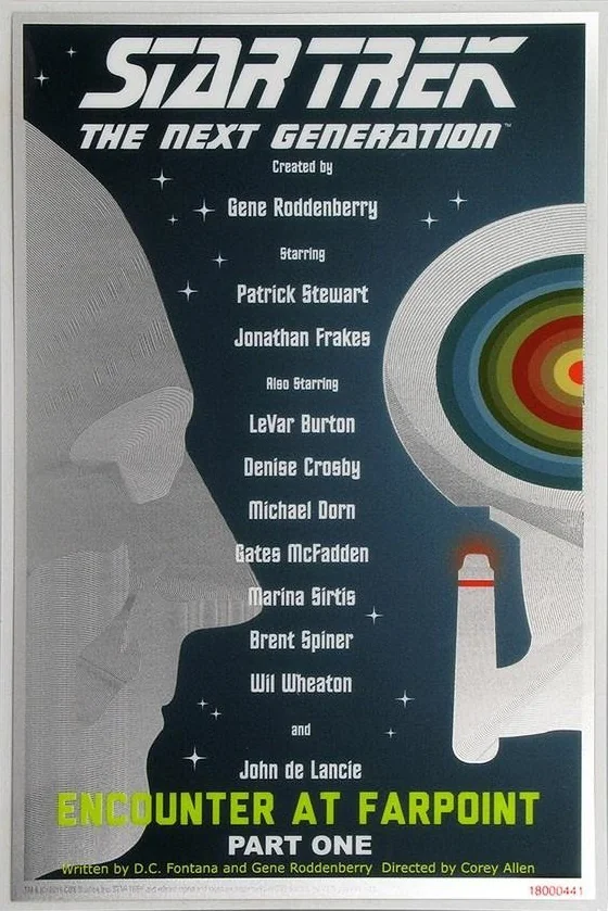 Description: Colorized poster art for "Encounter at Farpoint, Part 1" by Juan Ortiz.