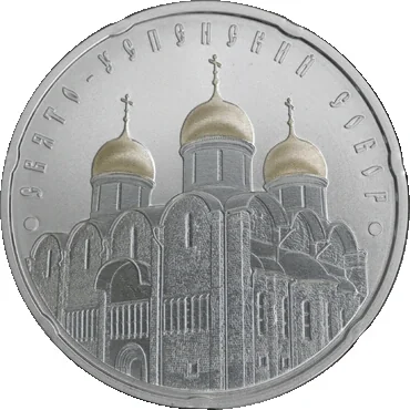 Central relief of the Moscow Kremlin's Assumption Cathedral, with pad-printed domes, encircled by the inscription: "СВЯТО-УСПЕНСКИЙ СОБОР (THE CATHEDRAL OF THE ASSUMPTION)."