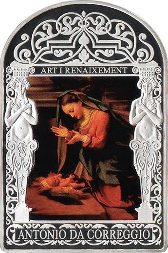 Correggio's "Adoration of the Christ Child" between female columns.