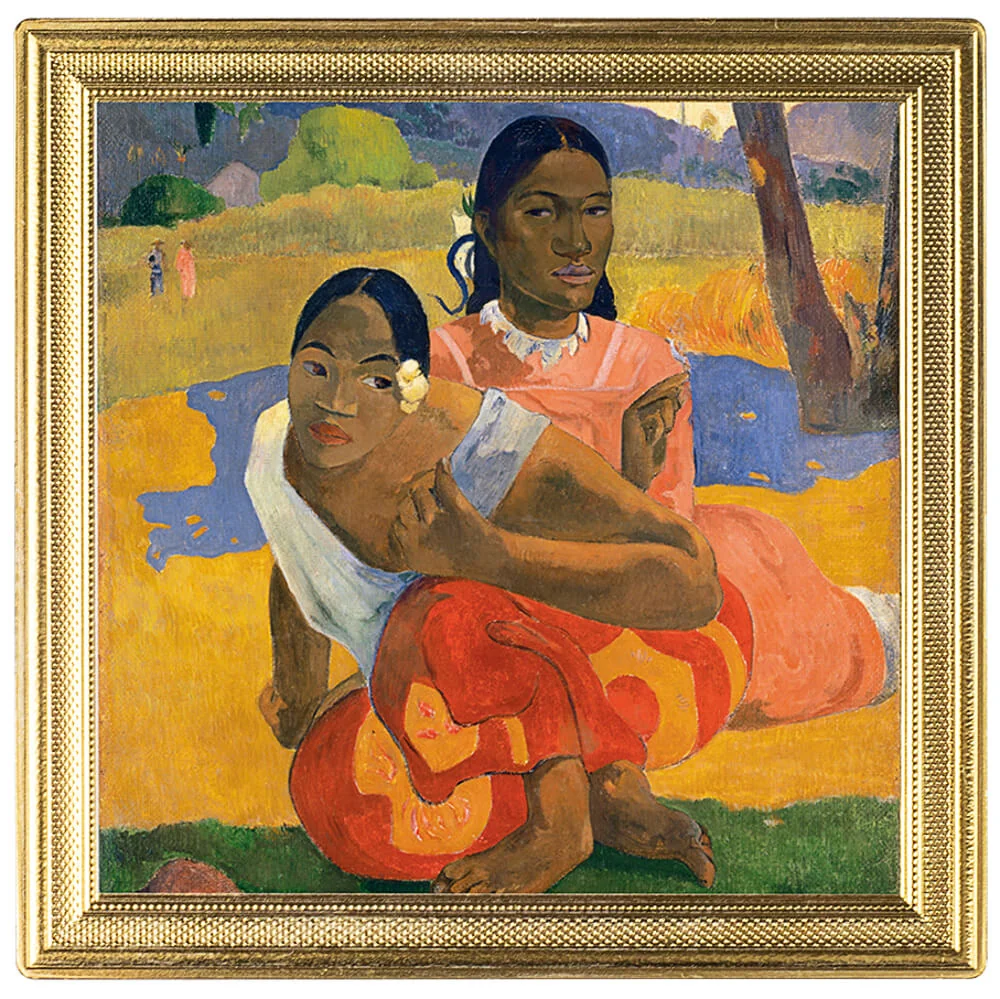 Central: Paul Gauguin's "Nafea Faa Ipoipo" with two Tahitians. Edge: decorative frame.