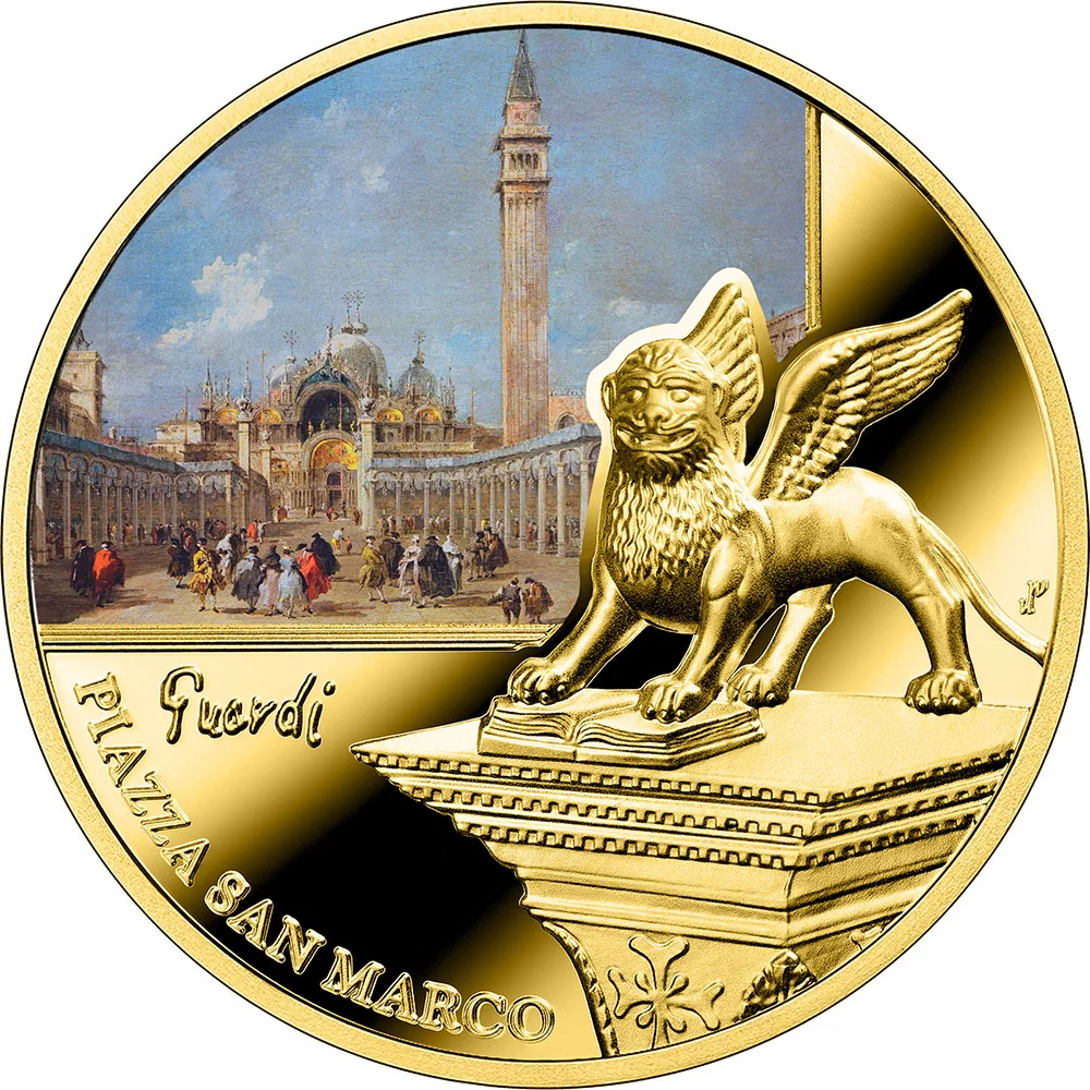A Francesco Guardi painting fragment showing St. Mark's winged lion, from a Venetian patron saint column.