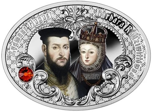 Sigismund II Augustus and Barbara Radziwiłł, framed with Swarovski crystals.