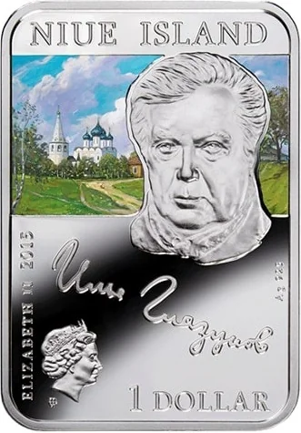 Central: Ilya Glazunov's portrait. Background: "Summer. Suzdal" landscape. Lower left: Effigy of Queen Elizabeth II.