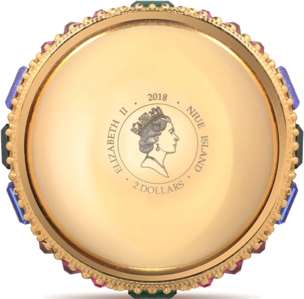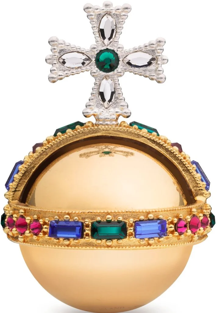 The Silver Orb is layered in 24-carat gold with 26 Swarovski® crystals. Its cross features ten Swarovski® crystals and silver beading that emulates pearls.