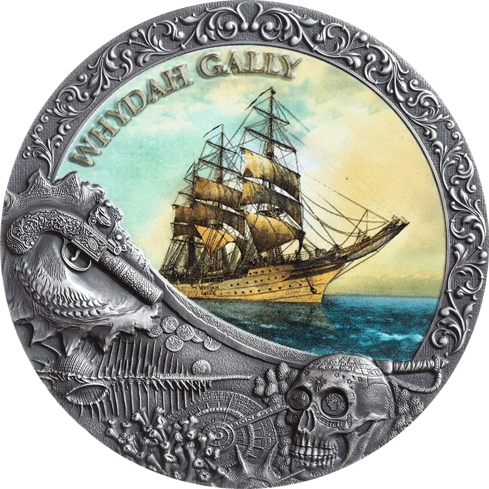 Whydah Gally, ringed with floral ornaments.