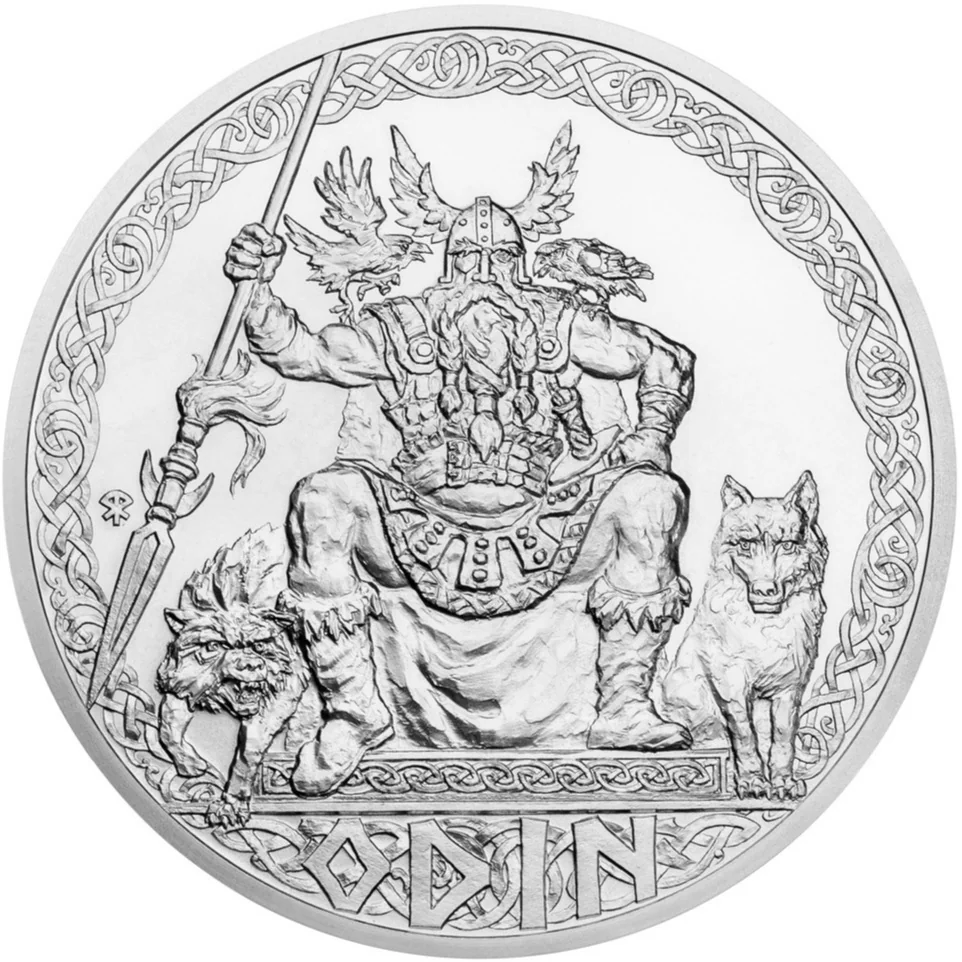 Odin on his throne Hlidskjalf, seeing all nine worlds, with his eye patch, spear, and animal companions.