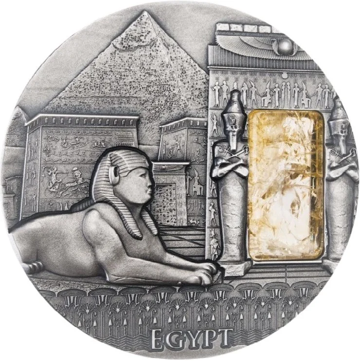 The Sphinx of Saqqara (Louvre), the Pyramid of Cheops, the Temple of Khonsu gate, and Osiris statues at Hatshepsut's Temple.
