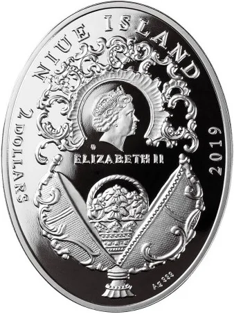 Queen Elizabeth II's effigy with the "Spring Flowers Egg" (1899-1903), containing a miniature anemone bouquet and basket.