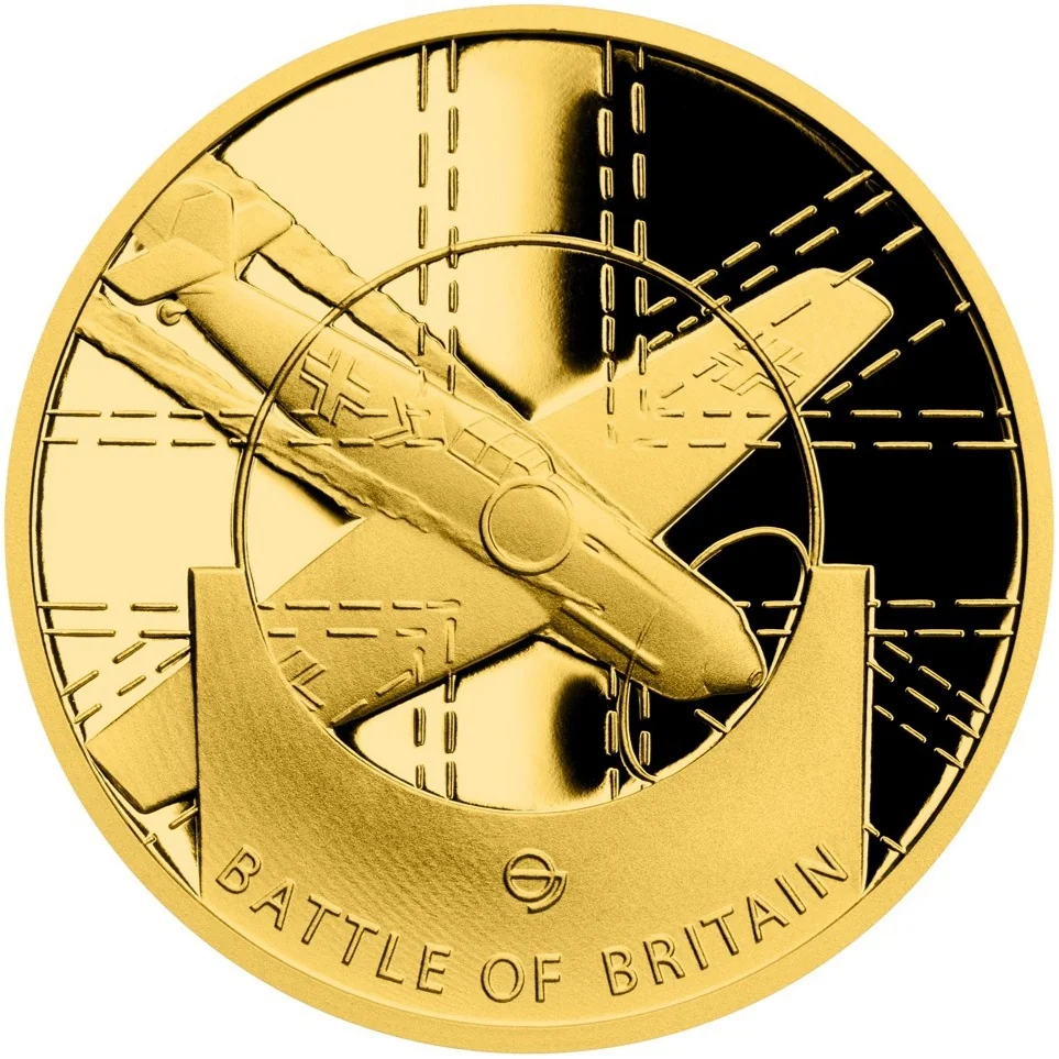 Queen Elizabeth II, flanked by shields of attacked nations and Nazi lightning.