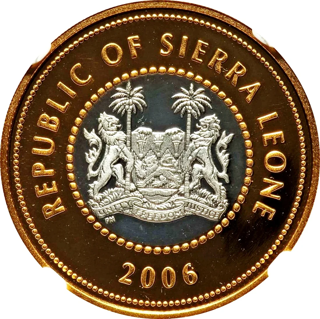 Sierra Leone coat of arms centered, surrounded by outer ring text.