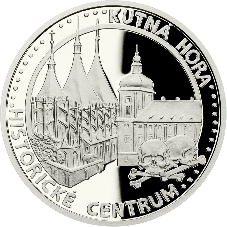 Queen Elizabeth II effigy with a collage of Czech UNESCO architectural elements.