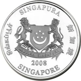 Emblem with date; 'Singapore' encircles it in English, Tamil, Chinese, and Malay.