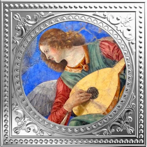 Melozzo da Forli's 1480 fresco "Angel Playing the Lute" adorns the vault of Rome's Church of the Twelve Holy Apostles.
