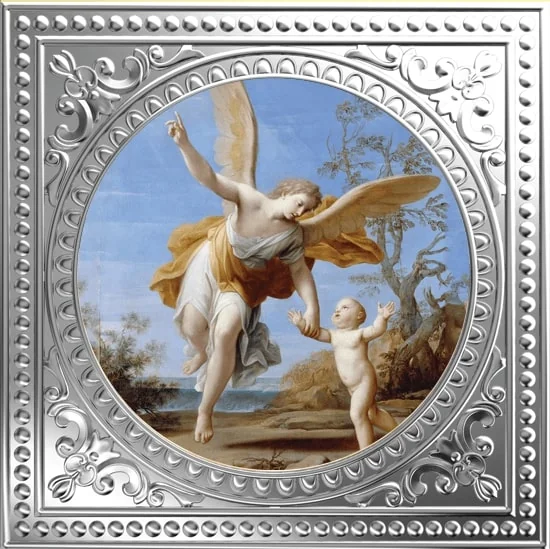 Painted in 1716 by Italian Baroque artist Marcantonio Franceschini, "The Guardian Angel" depicts an angel leading a child toward divine light, symbolizing protection from birth and guidance to God.