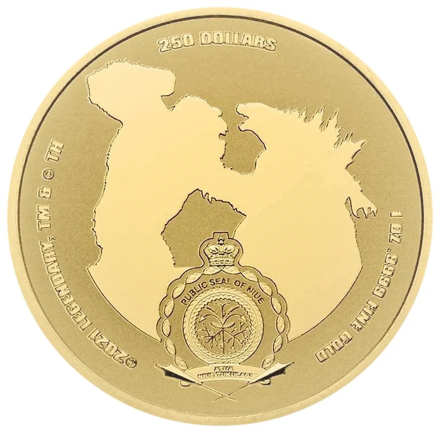 Niue Public Seal featuring Godzilla vs. Kong.