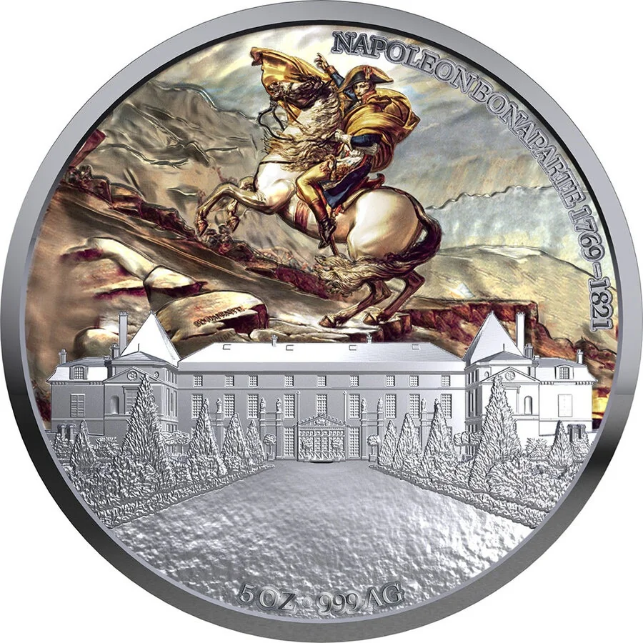 Napoleon on horseback from "Napoleon Crosses the Alps," above the Château de Malmaison.