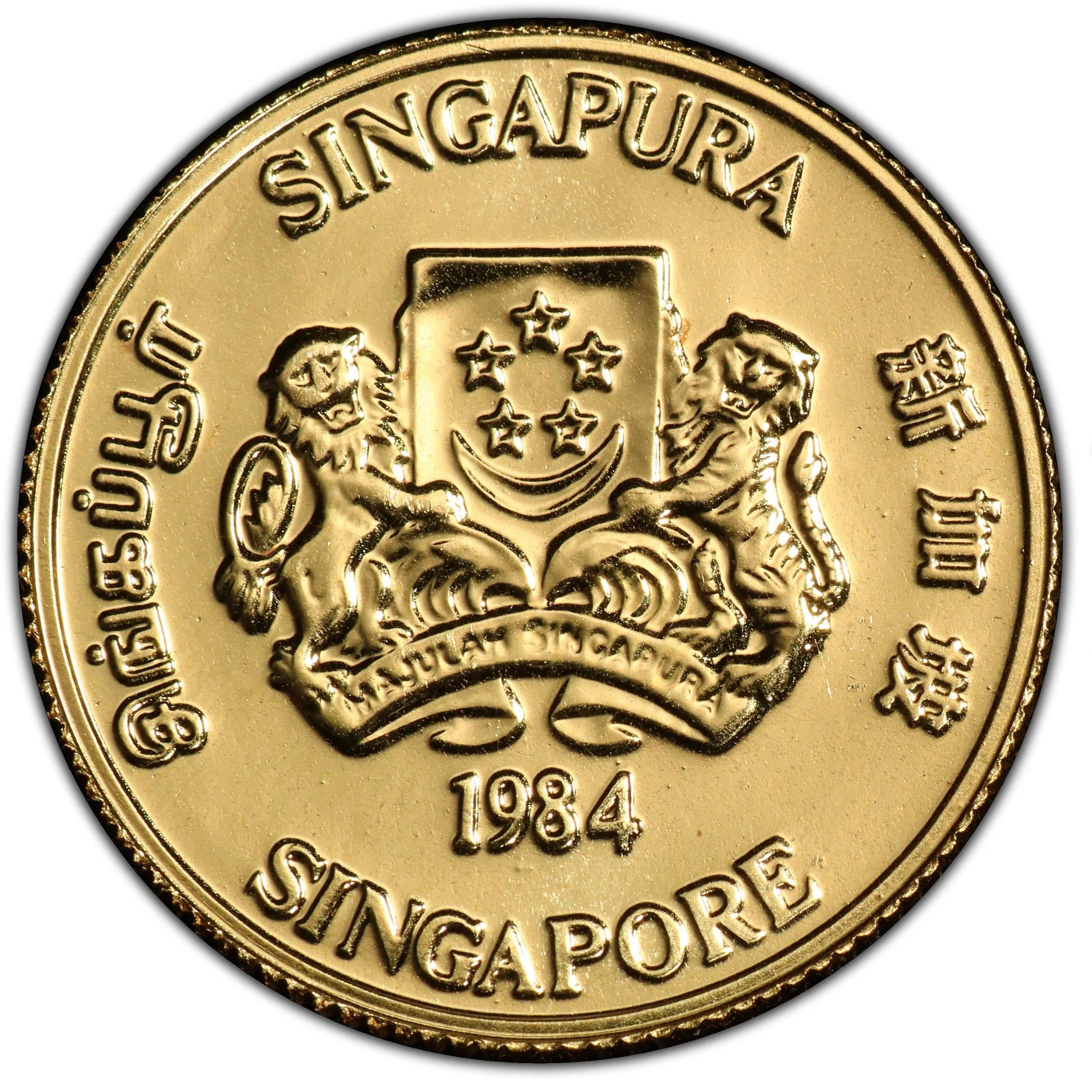 Emblem with date; 'Singapore' encircles it in English, Tamil, Chinese, and Malay.
