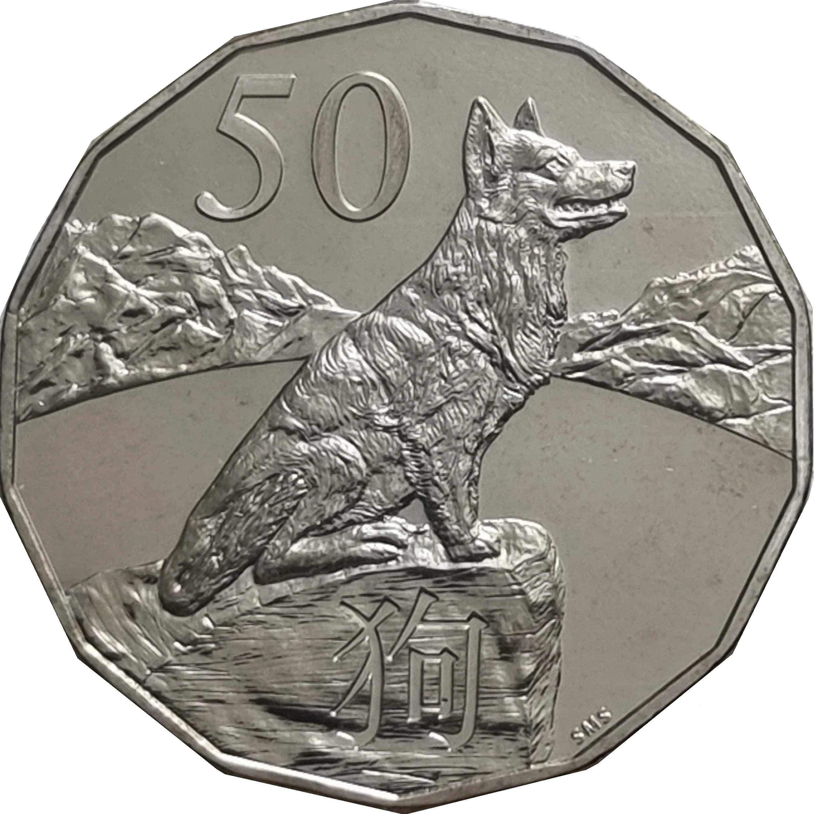Dog on a rock, with hills behind and the Chinese character for "Dog" below.