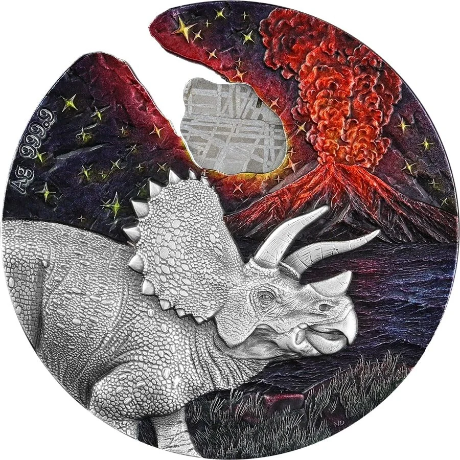 Queen Elizabeth II's effigy with a Triceratops skeleton.