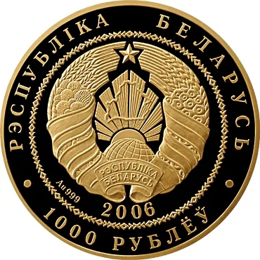 Below: year, gold alloy standard, face value "1000 РУБЛЁЎ".