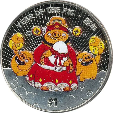 King Leonard, the Bearded King and main antagonist of Angry Birds, flanked by two pigs. Year is at the top in two languages; value is at the bottom.