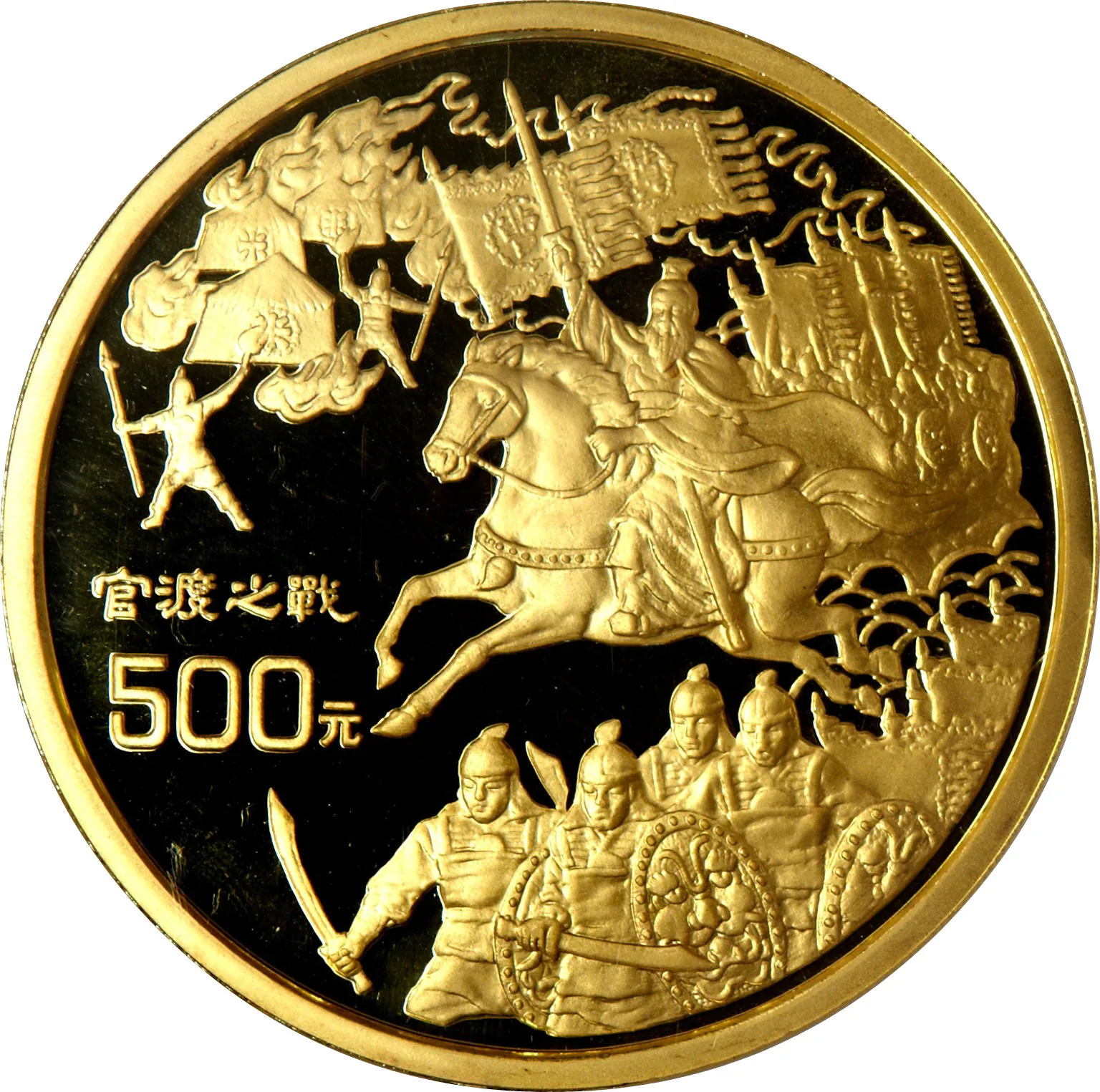 Guan Du leading cavalry, denomination at left.