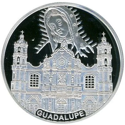 Basilica of Our Lady of Guadalupe facade with the Virgin above.