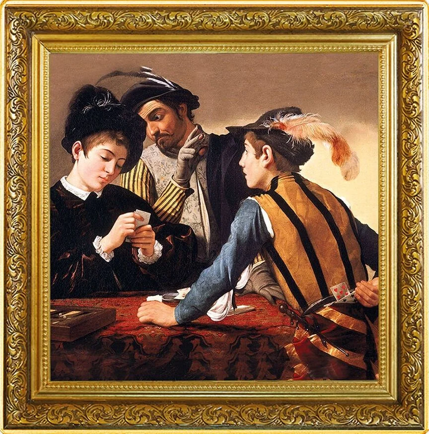 Caravaggio's "The Cardsharps" depicts a youth being cheated at cards.