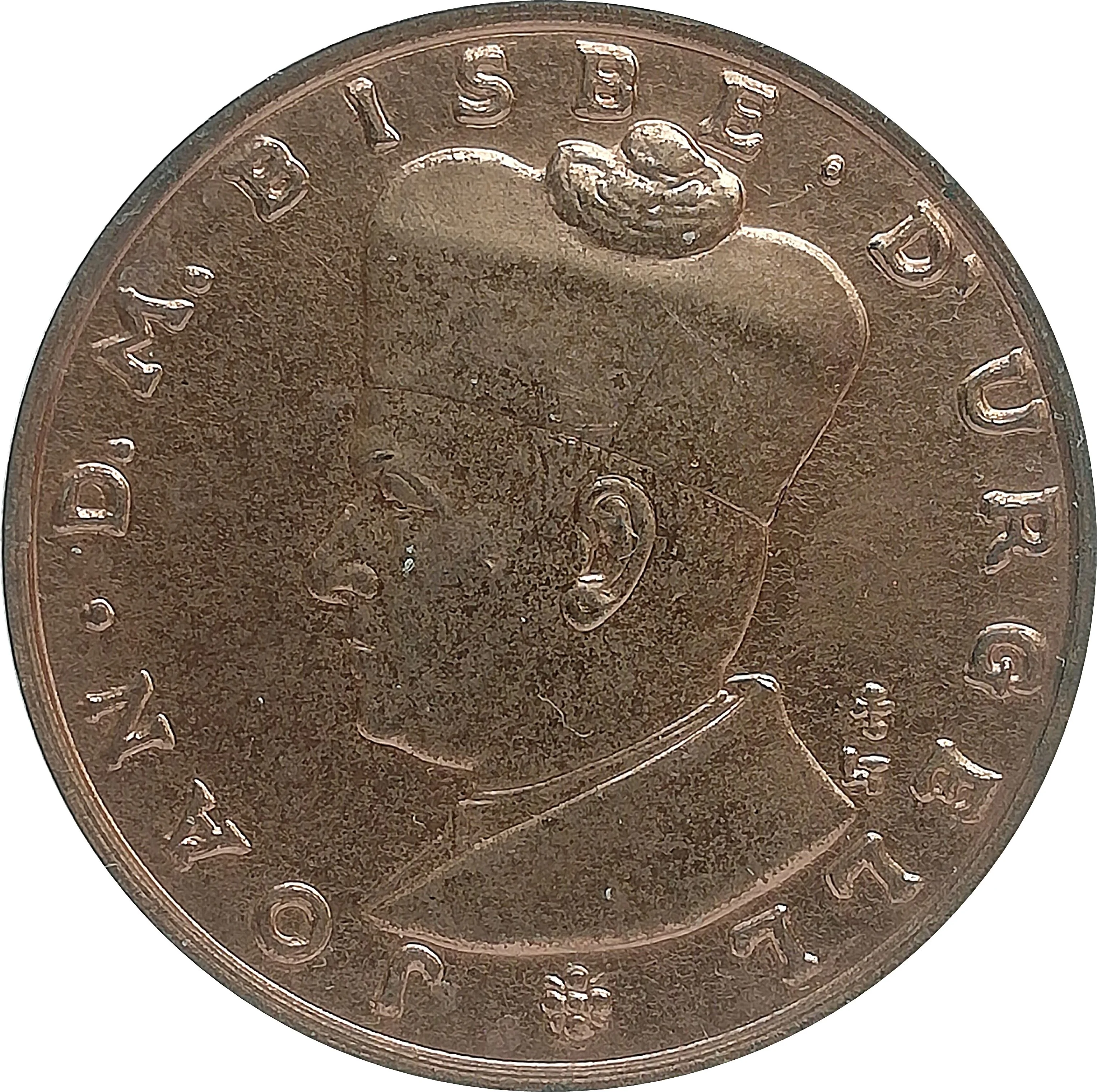 Joan D.M. Bisbe d'Urgell bust facing left, wearing a miter.