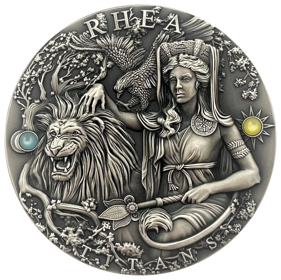 Rhea rides a lion.