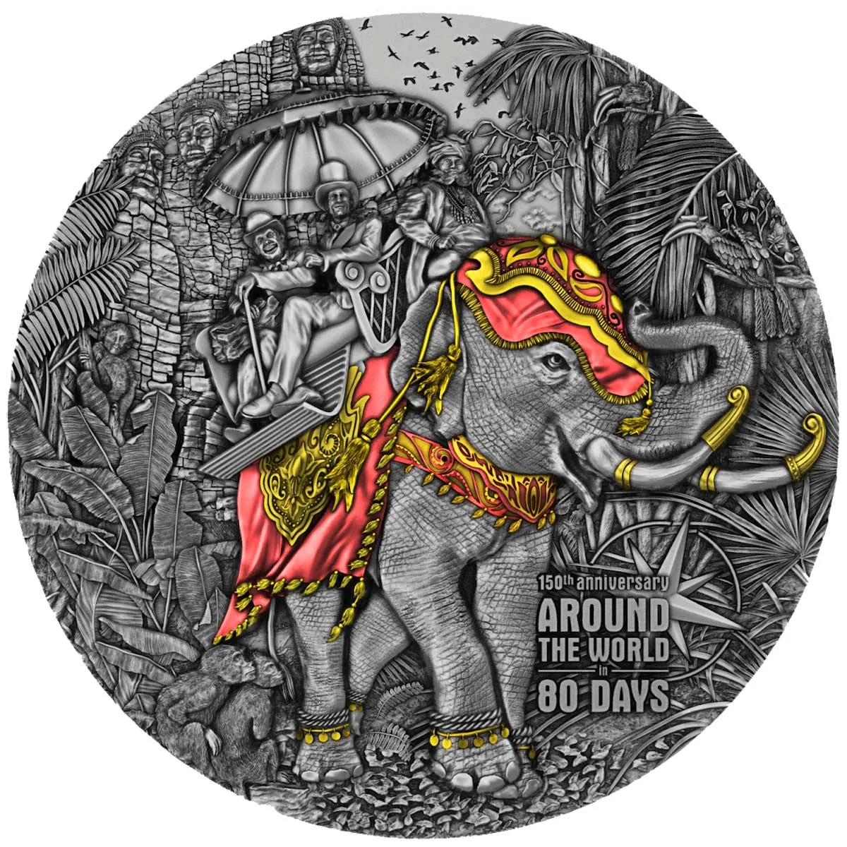 Fogg's transport modes, each bearing Niue's coat of arms.