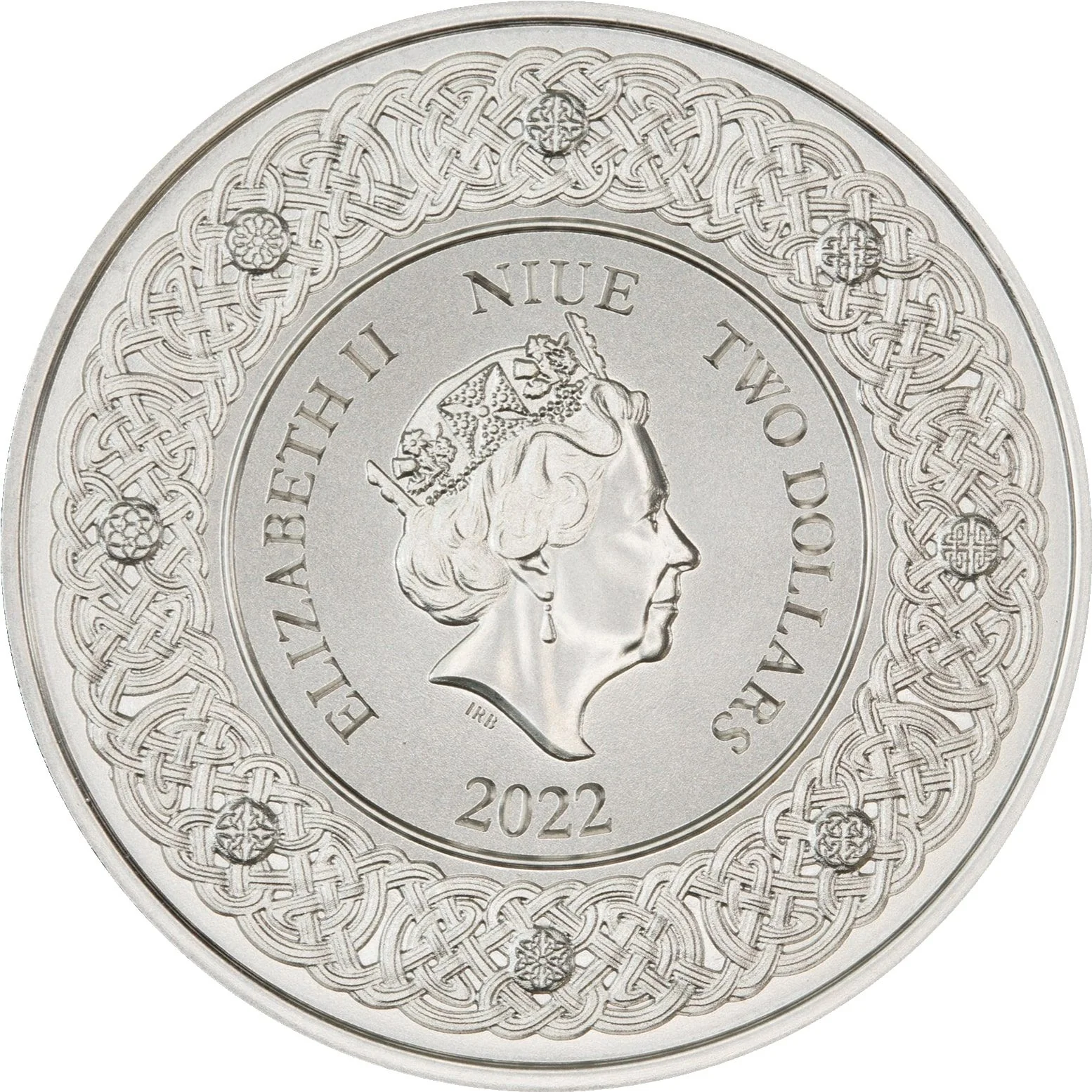 Queen Elizabeth II effigy encircled by a Celtic knot.