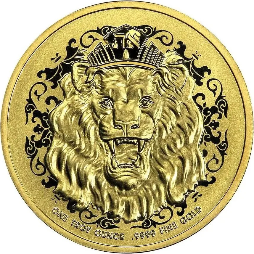 Crowned lion's head.