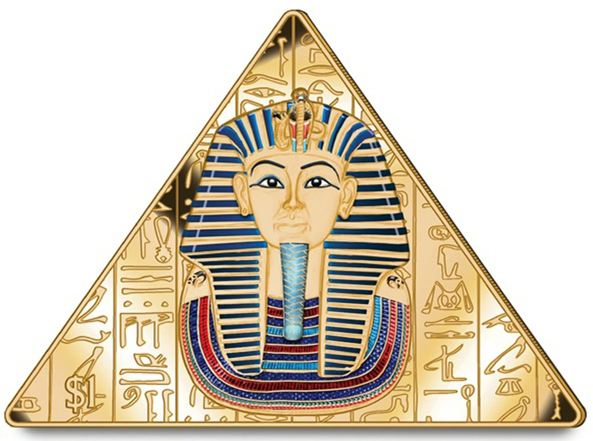 Tutankhamun's mask with hieroglyphics, value at left.