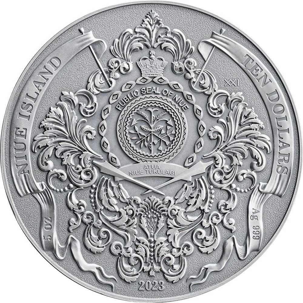 5 oz NIUE ISLAND TEN DOLLARS Ag 999