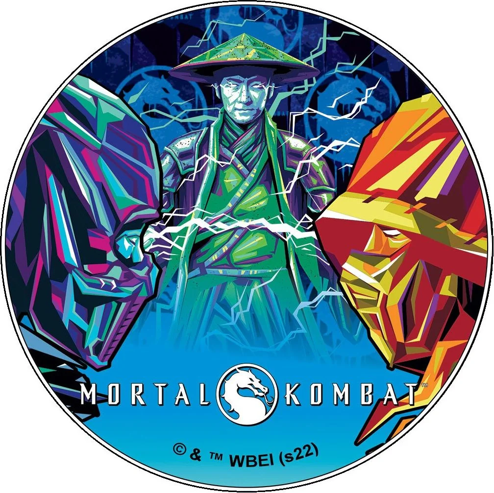 Mortal Kombat logo with Raiden, Sub-Zero, Scorpion.