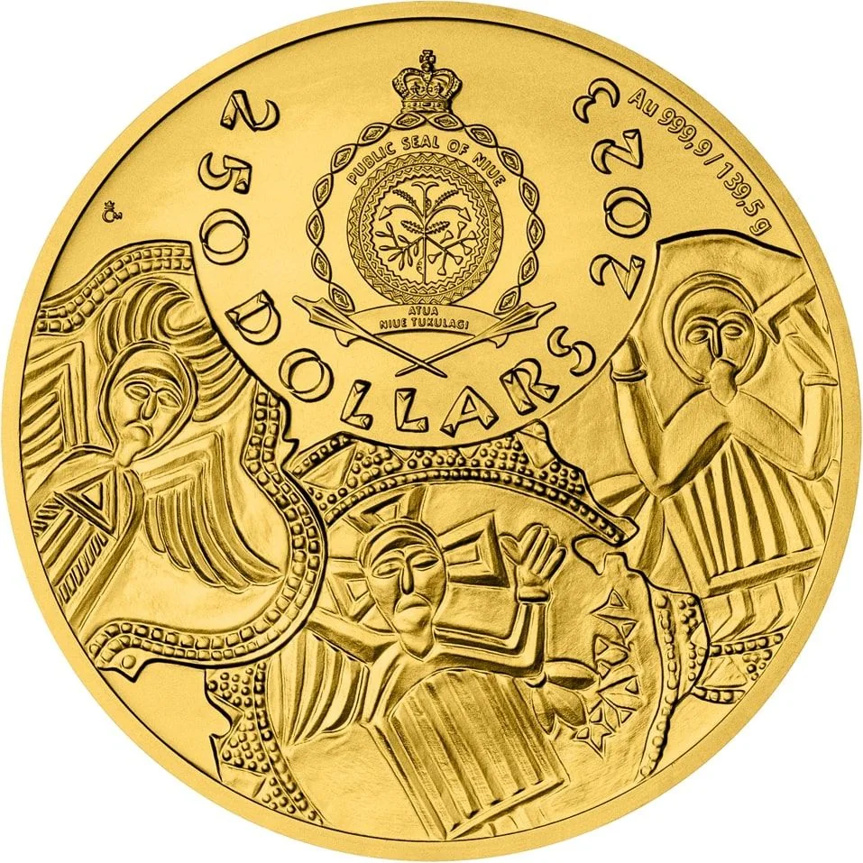 Niue's Public Seal featuring ancient Slavic art from Nitra archaeological finds.