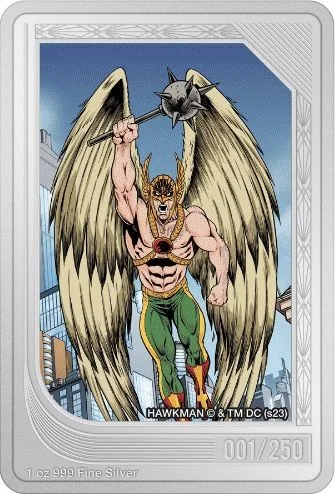 Hawkman is an ancient warrior reincarnated, armed with wings and a mace.