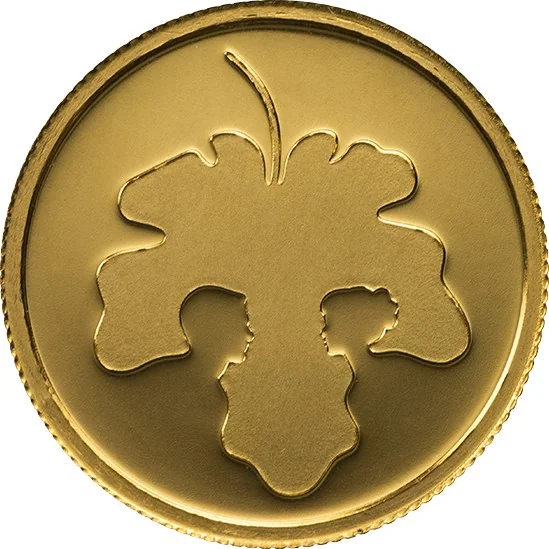 An artistic fig leaf merging Adam and Eve's silhouettes.