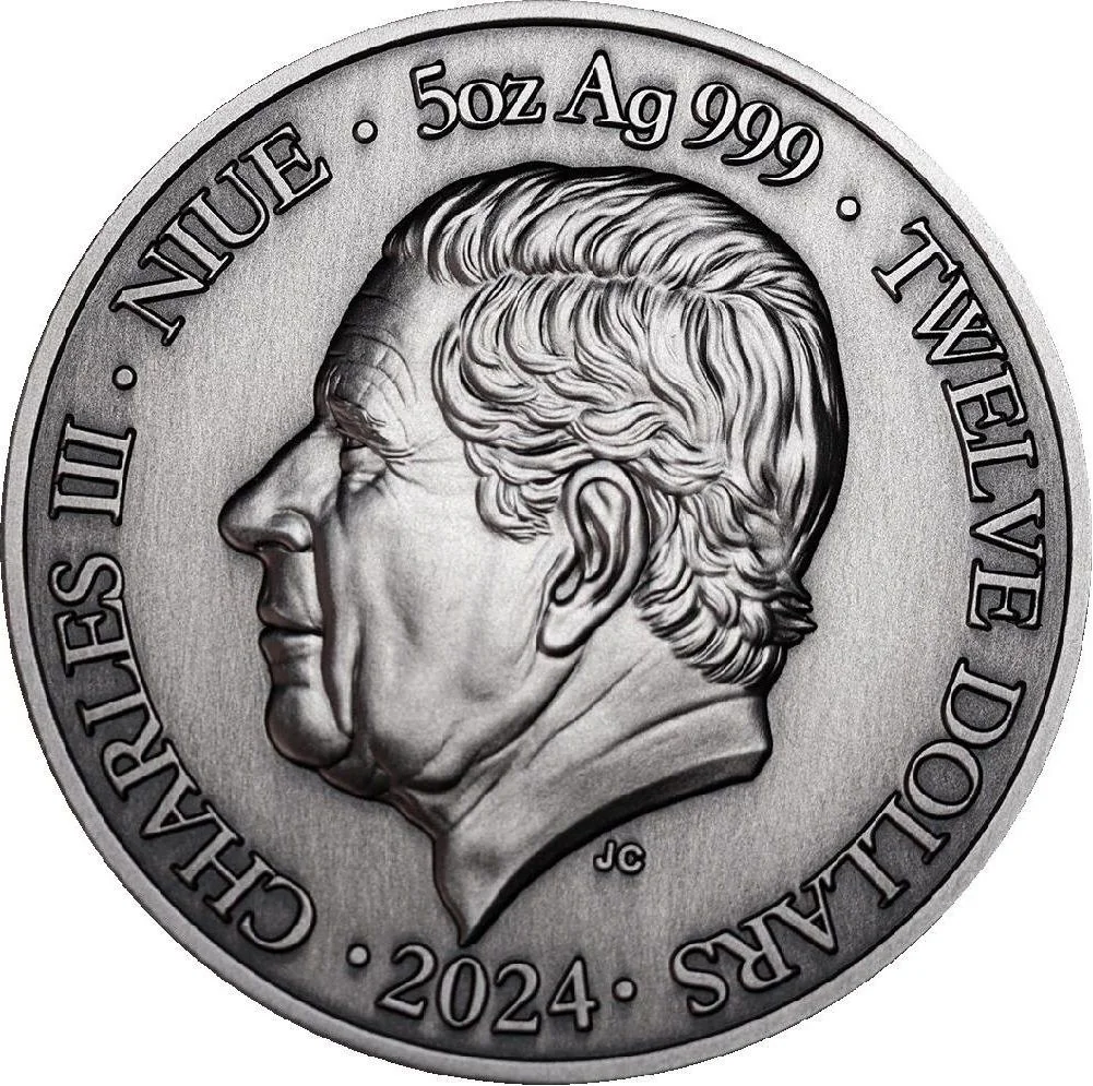 CHARLES III · NIUE · 5oz Ag 999 · TWELVE DOLLARS