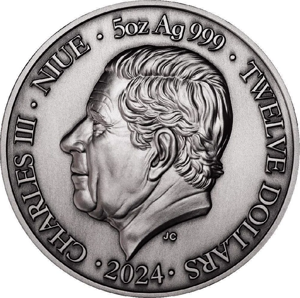 CHARLES III · NIUE · 5oz Ag 999 · TWELVE DOLLARS