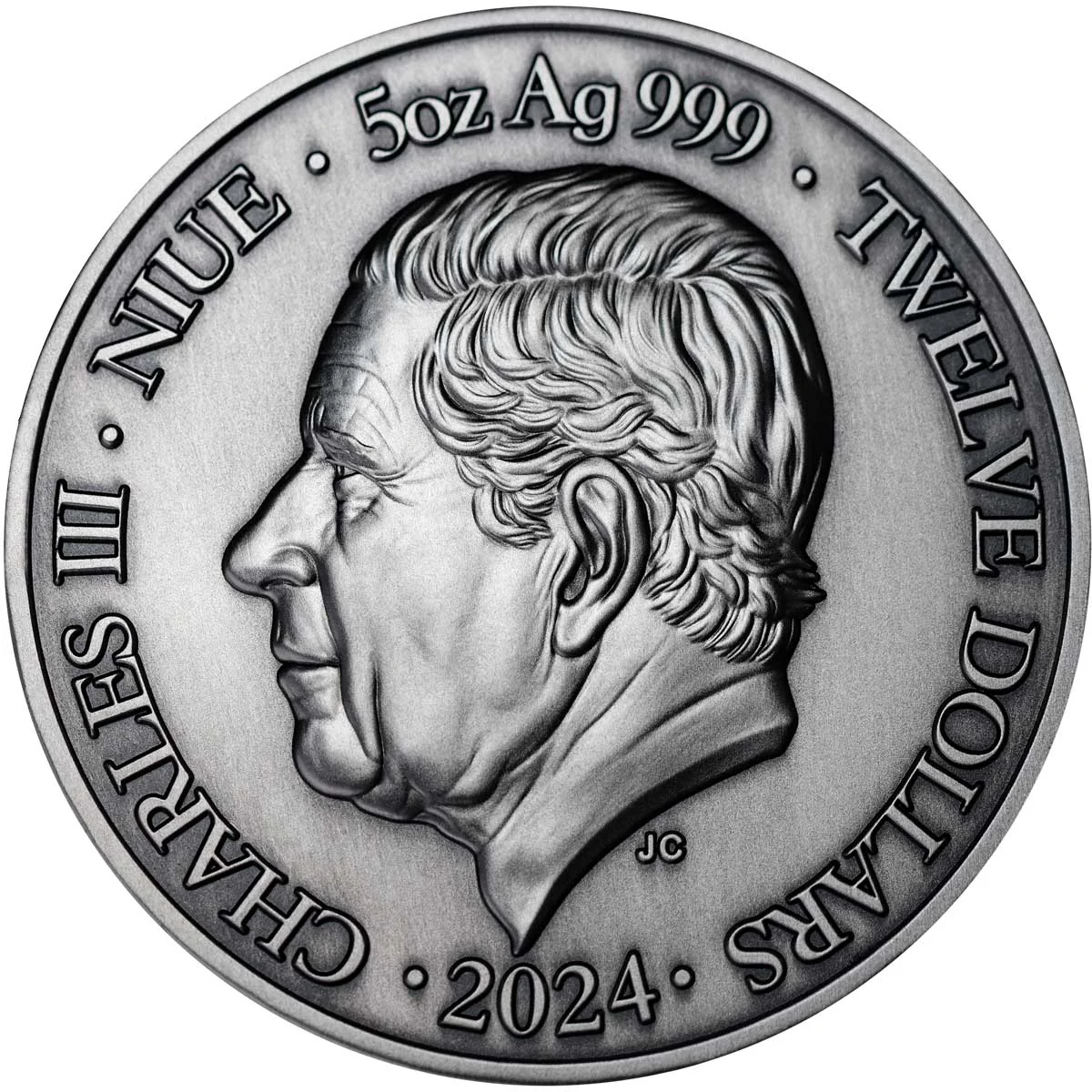 CHARLES III · NIUE · 5oz Ag 999 · TWELVE DOLLARS